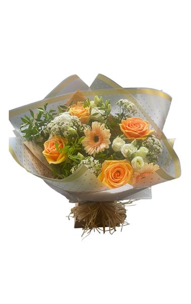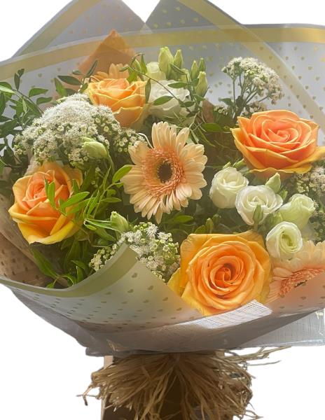 A delightful selection of flowers to include roses, gerberas and lisianthus available in an choice of colours.