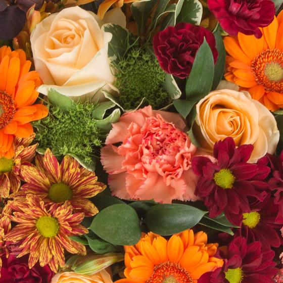 Please note that due to the seasonal availability of flowers it may be necessary to vary individual stems from those shown. Our skilled florists may substitute flowers for one similar in style, quality and value. Where our designs include a sundry item like a vase, basket or edible gift, it may not always be possible to include the exact item as displayed. If such an occasion arises we will make every effort to replace the item with a suitable alternative.